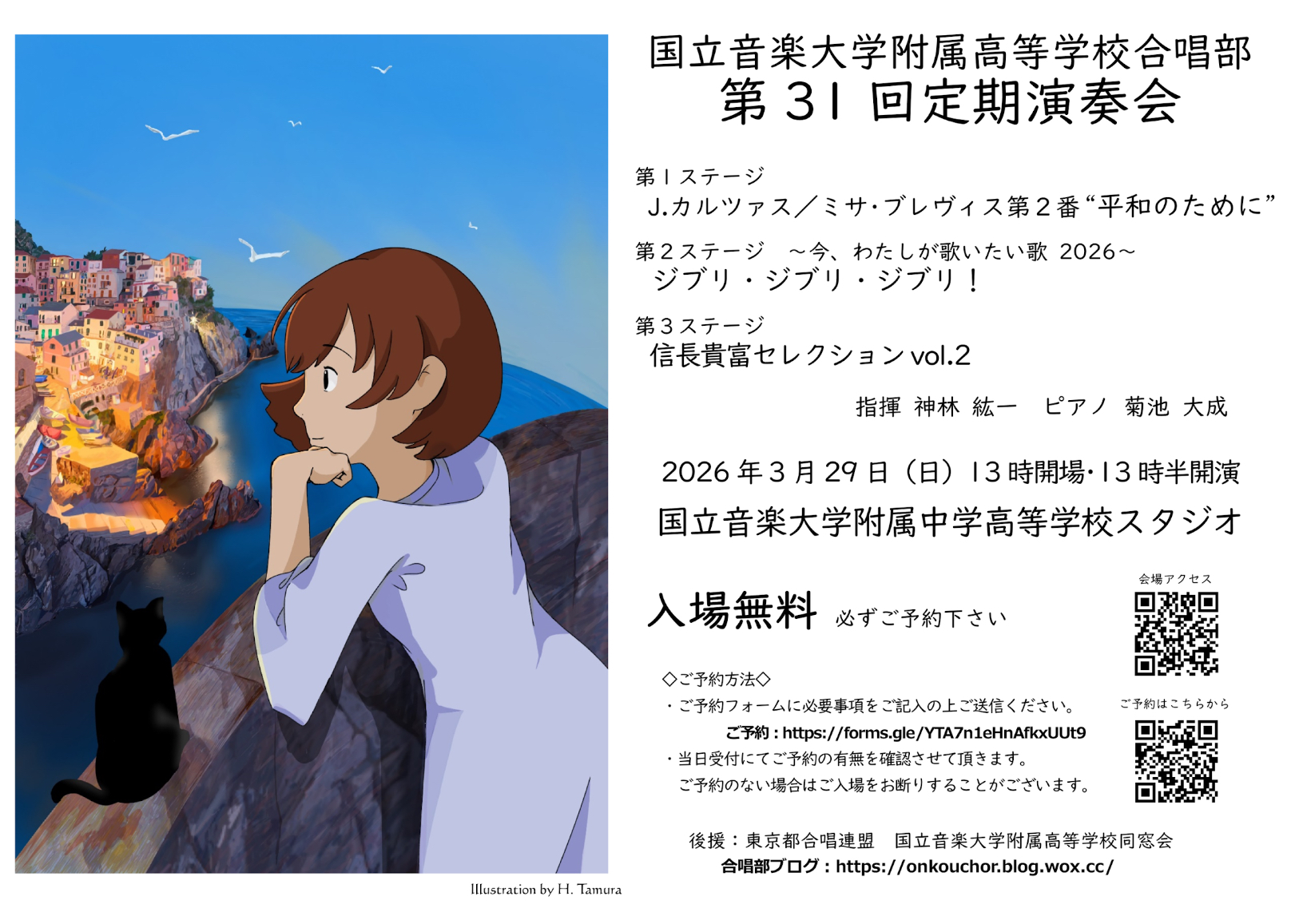 3月29日(日)13:30~本校スタジオにて高等学校合唱部 第31回定期演奏会を開催します。