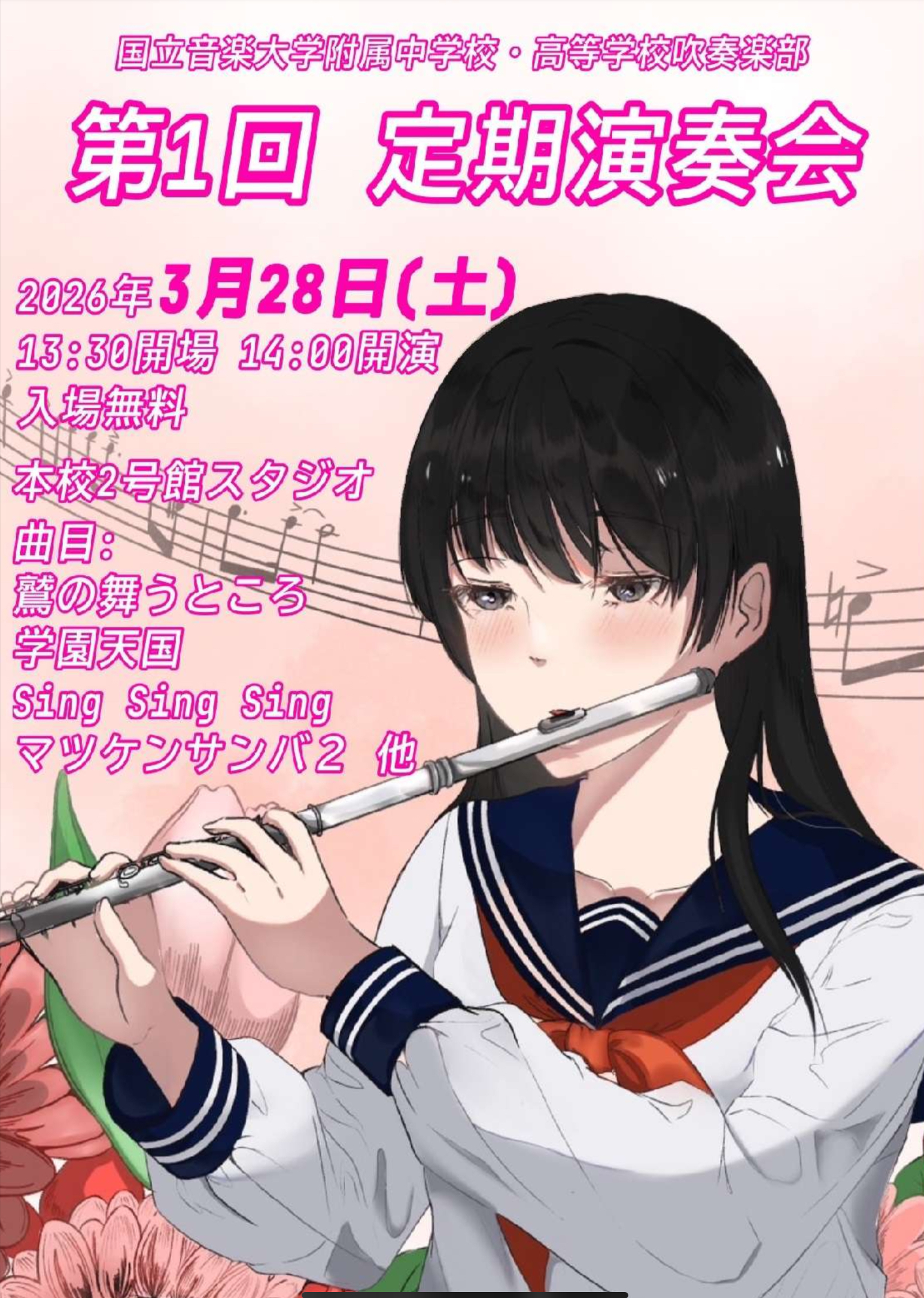 3月28日(土)14:00~、中学・高校が合同部活になってから、記念すべき「第1回」の定期演奏会を開催します。
